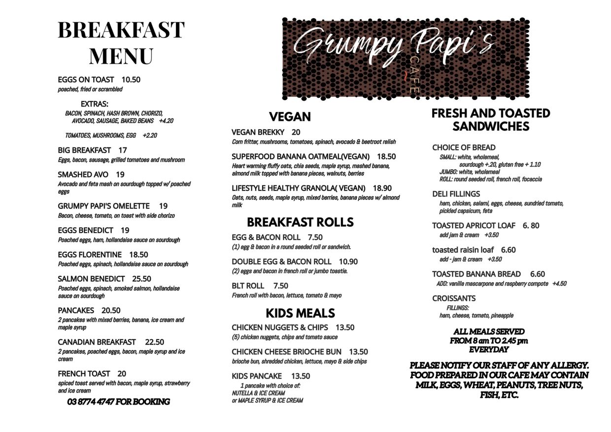 Breakfast - the most important meal of the day. So much on offer! From your vegan to vegetarian to big breakfast, there is a fair selection from the menu. Worried about not wanting an item from a meal? Let us know and we will customise your order. If we have it, we can do it!